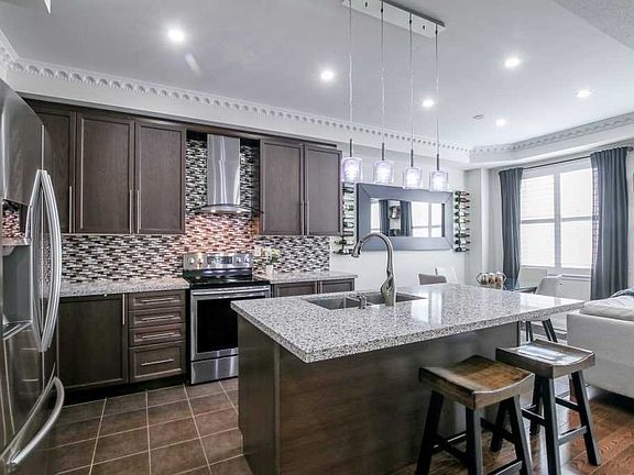 Spacious End Unit W/3 Bdrms! Executive Townhouse 9' Ceilings On Ground & Main Levels. Enjoy The Fully Upgraded Open Concept Floor Plan, Oak Stained Staircase, Smooth Ceiling On Ground Level, Kitchen With 42' Upper Tall Cabinets. Quartz Counter Tops Lrg Beveled Mirrors In Main Bath & Ensuite, Glass Shower Door In Ensuite, Lrg Master Bdrm W/His Her Walk-In Closets, Cali Shutters All Windows, Ac, Prof Landscaped Backyard W/Custom Pergola, Shed, Much More.