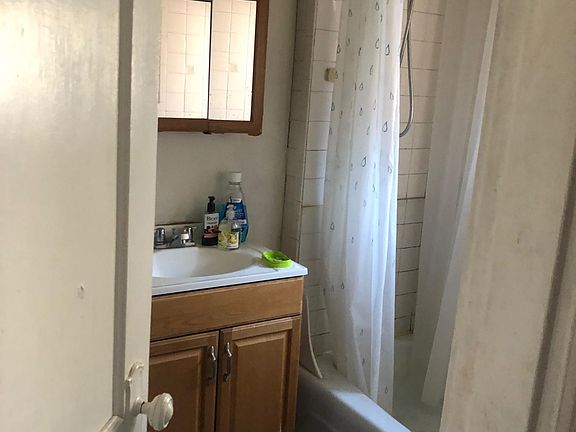 Tiled galley kitchen Hardwood floors Big windows Tiled bathroom Big windows Basement laundry