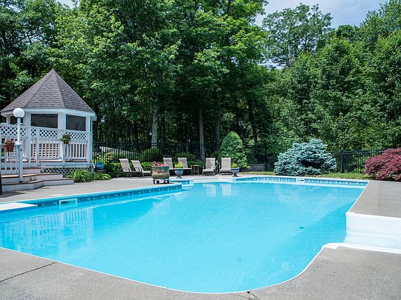 Unique blend of warmth and charm, this impeccably maintained home's open floor plan is designed for today's dynamic lifestyle. An expansive, light-filled kitchen sets the welcoming tone encouraging easy entertaining or leisurely living. Granite counters, SS appliances and Jenn Air cook top grace the kitchen's functional area, as an abundance of windows brings the beauty of the Perennial Gardens and Koi Pond to surround the kitchen's eat-in and sitting areas. Flowing into the Vaulted Ceiling Family Room, complete with floor to ceiling Brick Fireplace, step out to the privately set in-ground pool & Gazebo. Gracious Master Bedrm w updated bath. Two story foyer with split staircase. In-law potential or In-home office w separate entry and ½ bath; 3 car garage, all set on a pretty and level cul-de-sac. Sought after neighborhood with easy access to down-county commute areas or I84.