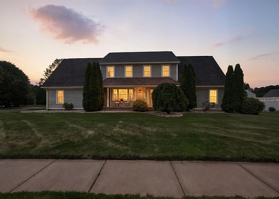 Exceptional 4-bdrm Colonial on a beautifully landscaped corner lot in coveted Devon Manor. The professionally designed kitchen is a showstopper with granite countertops, cherry cabinetry, Italian stone flooring, and a center island—open to a dramatic sunken LR with marble-glass fireplace, double tray ceilings, and gleaming hardwood floors. An elegant DR with gleaming hardwoods and picture window sets the stage for unforgettable gatherings. The sunroom offers a serene view of the spacious, fenced-in yard with stamped concrete patio, stone wall, and new shed. 1/2 bath completes main level. Upstairs, the luxurious primary suite features tray ceiling, a new custom dressing area with built-ins, a remodeled spa-like bath with double vanity and walk-in shower, and a convenient laundry room with custom shelving and sink. Three additional bedrooms and a stunning granite-and-marble bath complete the second level. The finished LL includes a home theater, wet bar with mini fridge, and 1/2 bath.