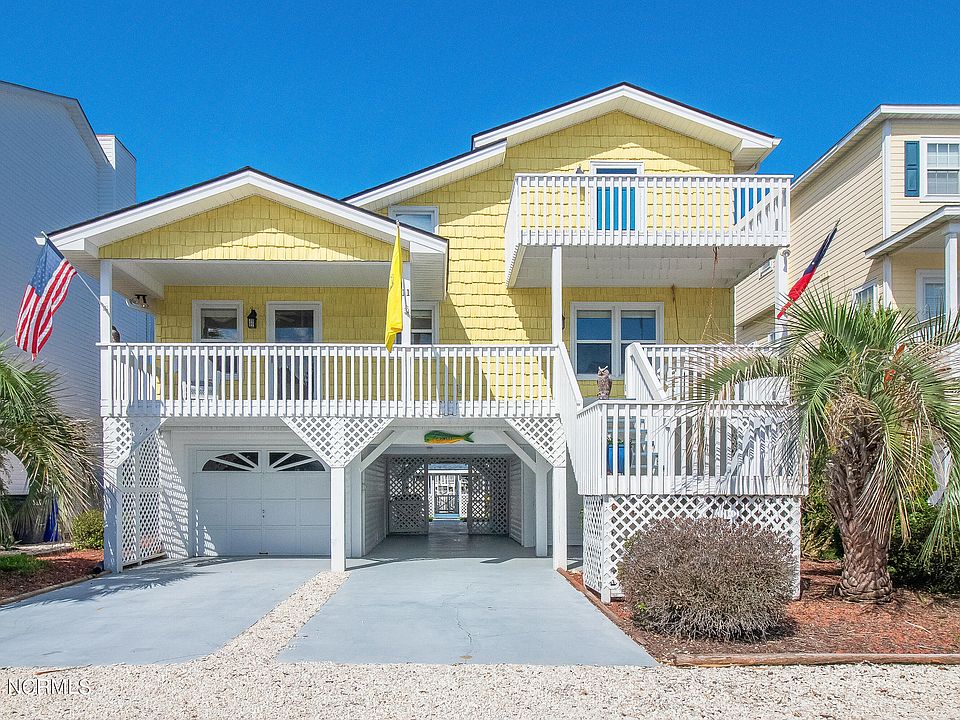 Just steps to the beach and your very own deep water canal front home. This 4 bedroom, 2 bath, 1.5 story home has plenty of outside and inside living. Start your mornings off with a cup of coffee and end you're your evenings with your favorite beverage on the large covered front porch. Enter directly into your main floor which features a dining area with wet bar, spacious kitchen with an abundance of cabinets. The oversized living room has vaulted ceiling and two walls of windows to let the sunlight in. Off the living room are three separate outdoor seating areas - choose from a screened-in covered deck, covered deck or open deck each overlooking the canal. Rounding out the 1st floor is a hall closet with full size washer and dryer and two bedrooms with shared bath, one facing the front and the other facing the canal. Upstairs you will find a large owner's closet, two additional bedrooms each offering their own outdoor deck and sharing a bathroom. It doesn't stop there though, this home offers plenty of outdoor entertaining space as well. A large grassy area for lawn games, an outdoor shower and Gazebo with fish cleaning station, Granite counters and seating area leading to your dock. Direct access to the beach and only 2 blocks away to direct access to the Intercoastal. Two zone HVAC system, newer roof and gutters. (see the General Information sheet for more information). The island has plenty of activities to keep everyone busy including playground, mini golf, novelty shops, restaurants and a museum. Fish off the pier, walk the beach looking for shells or just relax and watch the breakers. You don't want to miss this opportunity to make this waterfront house your own beach property.