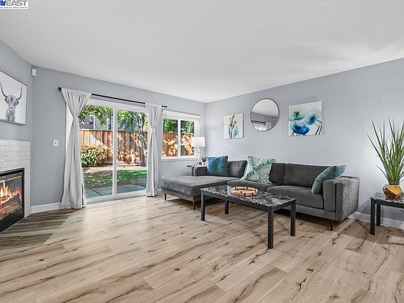 Located in the Heart of the Bay, this 2BD/2BA condo greets you with 1,100 sq ft of ample living space. Conveniently located on the ground floor, this corner end-unit has direct access to your own private garage. The living room greets you with double-paned windows, gleaming floors, a wood-burning fireplace, and an open-concept kitchen with stainless steel appliances, quartz counters, and an adjacent dining nook. The slider leads to the side patio, deck, and backyard, perfect for indoor and outdoor flexibility and entertainment. The private bedroom suite features its own bathroom, dual closets, and a slider leading to the deck and backyard. Adding to the appeal of this home is the secondary bedroom, full bathroom, in-unit washer and dryer, and a central location near BART, Mission Blvd and Hwys, parks, schools, restaurants, and so much more.