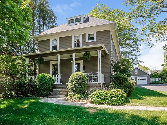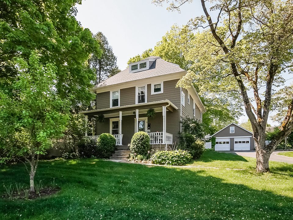 In-town GEM! Enjoy summer evenings on your front porch and making smores in the firepit on the rear patio. Updated 4 bedrooms, 2.5 bath colonial with hardwood floors throughout. Updated chef's kitchen w/ black granite and white cabinets & fabulous vintage sink. Formal dining room with sliders to patio and charming backyard with gardens. Enjoy the living room with stone hearth and gas fireplace. Unusual for a 1910 home there is a master bedroom with full bath & gorgeous glass shower. Master bedroom with custom closets. Finished bonus room in the attic adds play space or TV room or home office. Mudroom off of kitchen. 2 car detached garage. A quick walk or ride to the library, restaurants, movie theatre, shopping, summer concerts and more! Your new home awaits!