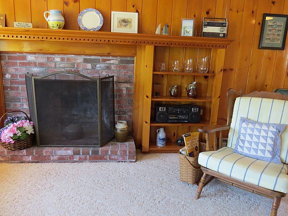 - Living Room: Living Room, Bay/Bow Windows, Fireplace, Beamed Ceilings, Wall to Wall Carpet