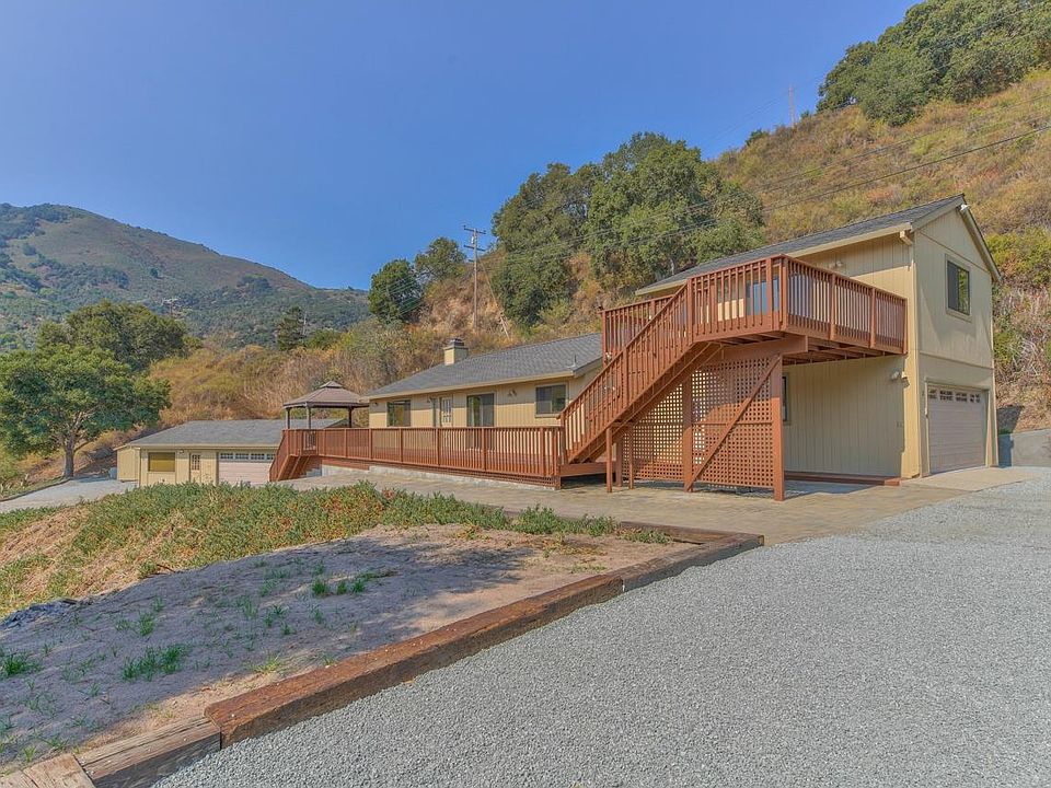Wonderful Mid-Valley home with gorgeous valley views! This lovingly maintained home features 3 bedrooms and two baths on the main level, w/ an additional living space and bath over the attached 2 car garage w/ a separate entrance that could be a 4th bedroom or bonus room! The kitchen has custom Hickory cabinets, granite counters, & stainless steel appliances including a Wolf cooktop & Bosch dishwasher. Beam ceilings in the living room, a cozy & efficient pellet stove, & new dual pane Marvin windows throughout. In addition, there is a separate detached 960 square foot garage/shop that is completely finished with beautiful knotty pine ceiling and walls, open beams, a pellet stove, & tons of room! This is a great space for car collectors, game room, workshop, or possibly an ADU. This unique country property is conveniently located in mid-valley right across from Garland Ranch, with a 25 acre parcel of open space that belongs to the Regional Park District adjoining the property.