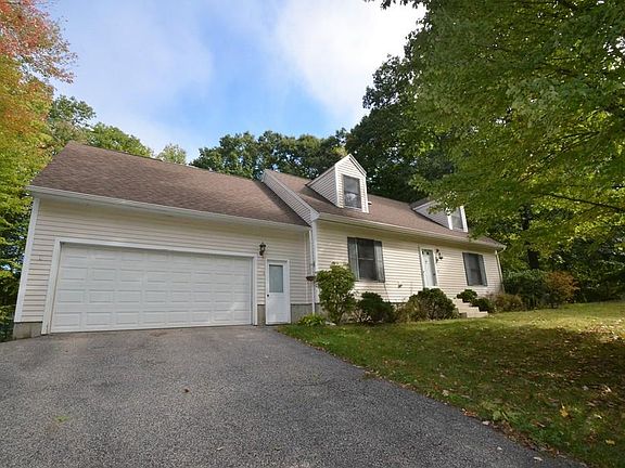 OPEN HOUSE SUNDAY 10/16 1-3 p.m. Well maintained Cape style home just over Amherst line on quiet cul-de sac. Living Room has hardwood flooring, fireplace and is open to dining room which has a new slider leading to large deck overlooking spacious yard with stone patio/ labyrinth . Kitchen has stainless appliances & solid counter tops, full bath and office/or 4th bedroom to complete the 1st floor. On the second floor, there is a spacious master bedroom & 2 additional bedrooms as well as second full bath. Newer heating system, 3 mini-split A/C systems, newer roof, as well as other improvements. Nice cleared yard is perfect for entertaining or for kids to play. Over-sized two-car garage with exterior doors & basement stair access a plus. Pond views from your deck make for a serene setting. Minutes over the Amherst line.