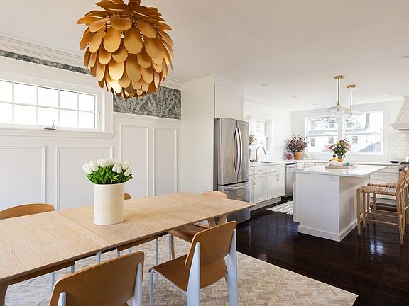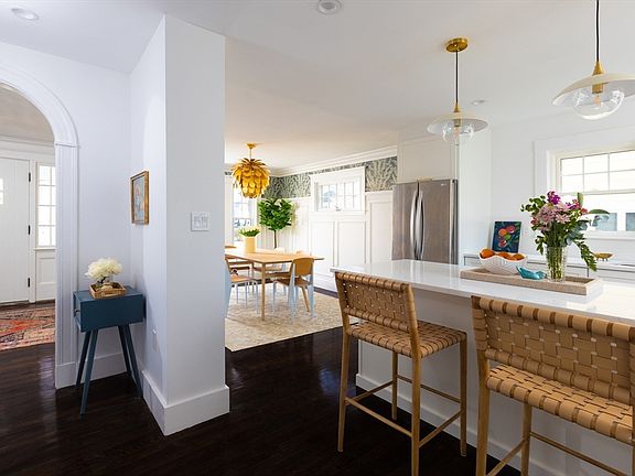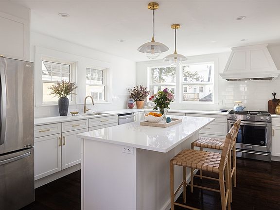 Prepare to be dazzled by this designer 2024 renovation of a classic 4 bedroom, 3.5 bathroom Colonial in one of West Roxbury’s most desirable neighborhoods. Distinguished by beautifully curated fixtures and finishes, this property exudes both modern elegance and architectural charm. An inviting foyer with a gracious arched entry beckons you into the beautiful open plan kitchen / dining room, where formal white-painted millwork is balanced by the warmth and comfort of an expansive quartz-capped kitchen island perfect for lazy mornings and casual gatherings. The luminous living room flows easily into a first-floor play room or office. The second floor offers three generous bedrooms and two exquisite new baths including a luxe ensuite primary. Or take the stunning new 3rd floor suite with its serene soaking tub, marble shower, and dreamy walk-in closet. Updated plumbing, electric, and HVAC. Fabulous fenced backyard and attached garage. Coveted location close to shops, restaurants & the T.