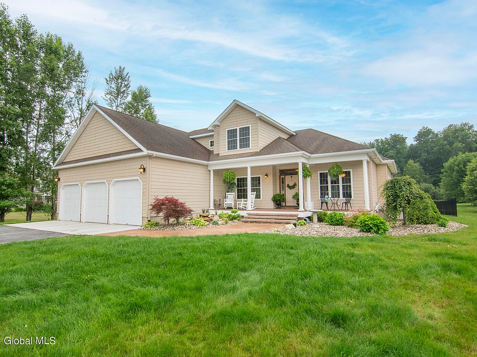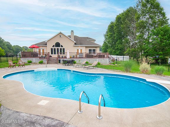 Spacious Retreat in Greenfield: Custom Home with 1st Floor Primary Suite, In-ground Saltwater Pool & Hot Tub on 1.5 Acres! Saratoga Schools! This spacious 2,700+ square foot home features an open, airy floorplan with a stunning vaulted primary suite overlooking pool, open cathedral living area, and a killer backyard with in-ground pool and hot tub! Let this home be your private retreat from it all! With more than an acre of land in Greenfield, you'll love this quiet neighborhood of fine homes in the Saratoga School District, and the award-winning Greenfield Elementary School. It's convenient to bustling downtown Saratoga Springs yet affords you the privacy you've been craving! + 3 car garage w/ lift potential, generator backup, central vac! See virtual tour for more!