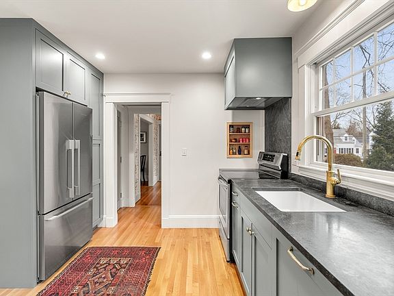 Custom built for the previous owners, the current Stewards are only the 2nd owners to preserve and enjoy the many beautiful features throughout. Updates over the years blend seamlessly with original details. The feel of this home is special; it offers a respite that makes one want to curl up with a book in one of the many serene spaces. A large LR accommodates multiple seating areas & the wood burning fireplace banked by windows looks into the 3 season sun porch. The bright backyard facing DR features wainscoting and built in cabinetry. Generous room sizes, elevated wall paper and light fixtures, and flexible use of space on all 3 levels. Recent updates include a new roof (2021), custom designed kitchen, new half & full baths, finished attic, repointed chimney & new oil burner (2021). Detached 2 car garage. Expansive gardens w/ perennials & flowering trees provide privacy. Close to Turners Pond, Library, Central Ave restaurants/coffee shops, Blue Hills Reservation and T/public transit.