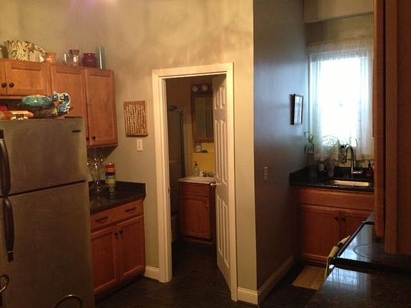 First month and security deposit only. All large rooms with recent refinish of hardwood floors. Large eat-in kitchen, granite counters, lots of cabinets, stainless steel new microwave, dishwasher, garbage disposal. Gas heat, coin op washers (2)and dryers (2) in basement. Parking available for rent.
