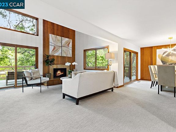 Spacious and serene contemporary home located on a sunny .60 acre lot with breathtaking vistas of 100+ year old trees in the heart of sought after Reliez Valley. Featuring fabulous floor plan, dramatic vaulted ceilings, walls of glass, warm wood accents and stunning architectural details throughout. The living room features a dramatic two story fireplace with a wall of windows and dining room opening to the decks for alfresco dining and relaxation. The large chef's kitchen with striking atrium windows extending the entire kitchen to bring the outdoors in, modern cabinetry and granite counters. The large family room delights with soaring ceilings, two story fireplace with raised hearth, plus adjacent half bath. The primary retreat on the main level features a large bedroom and luxurious updated bath. Upstairs is the loft area/bonus space, plus two additional bedrooms opening to private decks, a hall bath, and fourth bedroom that is ensuite with double sinks, skylight and abundant storage. Beautiful wooded views create a sense of privacy and tranquility from the numerous decks, a seasonal creek and additional outdoor spaces with room for a lawn. This home is ideally located in beautiful Lafayette with its award winning schools, vibrant downtown, great BART and commute access.