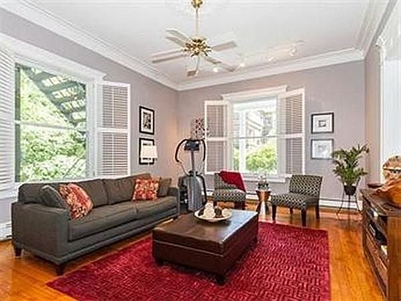 Stunning 6 room, 2 bedroom, 2 full bathroom home on coveted Sumner Hill in one of JP's finest historic buildings. Ideal marriage of old world charm and modern living. Features soaring ceilings, oversized windows, exquisite crown molding details, original hardwood floors, and a sunny southeast exposure. Generous living room with ornate carved fireplace. Sleek and modern kitchen. Dining room opens to a sweeping porch, perfect for entertaining. A study/office room leads to the master suite. Active condo association. Heat and hot water included in condo fee. Includes an off street, partially covered parking spot, too! Peaceful, one-way street, with 5 minute walk to City Feed and other shops on Centre Street and 5 minute walk to Green Street T stop.