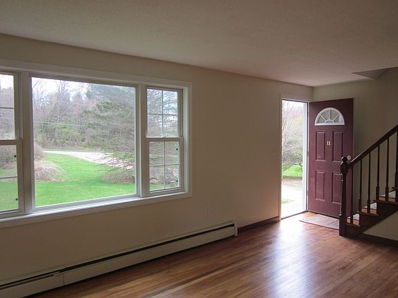 Spacious 3bd, 1& 1/2 bath duplex, 1200 sq ft with dry walkout basement, on two acres. Hardwood floors, new windows, siding. Very attractive. Plenty of storage in dry basement with washer/dryer hook up. Large eat in kitchen with dishwasher, micro, oven/stove and refrigerator. Excellent commute to Hartford, Glastonbury, UConn, ECSU, Norwich, Willimantic. Highly ranked school system. Walk to tennis courts, running track, town park with playground, skate park. Two months sec, credit check and employment verification. Utilities not included; oil heat with efficient furnace that is cleaned regularly. We take care of snow plow and lawn maintenance. Available June 1st.
