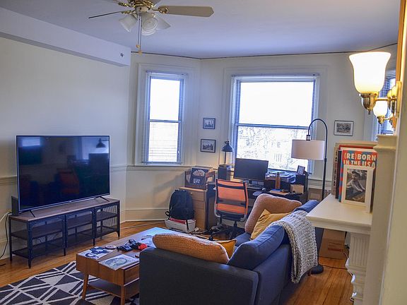 Extra large dog friendly apartment with plenty of rooms for belongings. This dog friendly home has a comfortable eat in kitchen, an ample bathroom with shower and soaking tub that your pet will relax in.The ceiling are high adding to this already spacious home. There is a very clean on site laundry room with folding area. There is rental parking in the rear of the building with back exit and entry to three staircases. The building units are rented to working professionals and quiet enjoyment is maintained throughout. The unit is on the 3rd floor front Eastern sunrise view for the early morning Dog walk in this friendly neighborhood. Many express buses to Downtown Boston and other in town places and transpotation hubs. heat and hot water are included in the rent