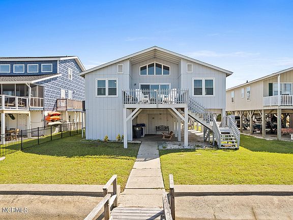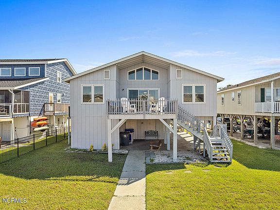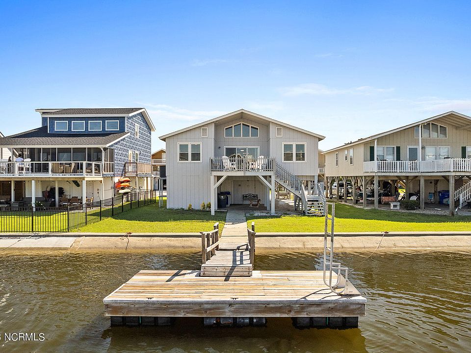 There is local shopping, many restaurants and a gorgeous white sandy beach. This adorable pristine beach bungalow sits above the deep navigable water of a rebuilt concrete canal including pier and floating dock! This shot-gun style beach home has 4 large bedrooms, an open floor plan and 2 large decks for sunning or watching the boats go by.