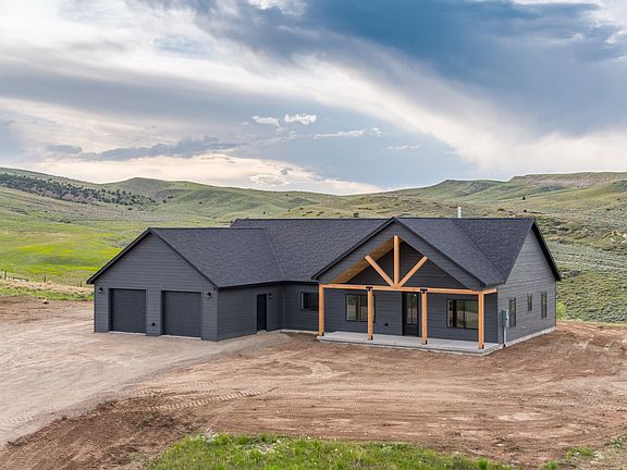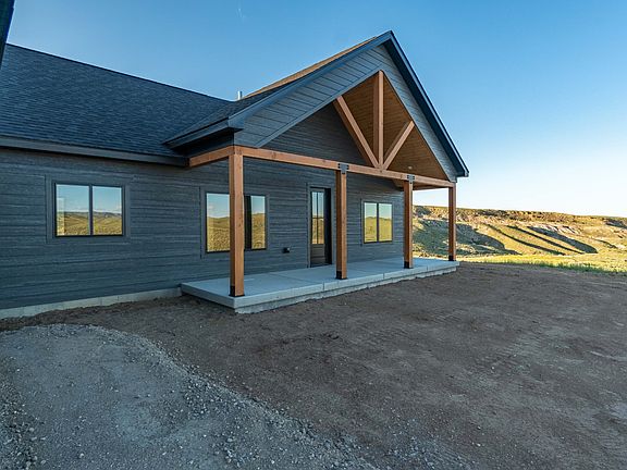 Brand new 2022 Custom Build! This brand new Rustic Modern ranch style home offers unbeatable 360 degree views. Every room in the house has an amazing view. This home offers 3 bedrooms and 2 bathrooms with a very practical feel. As you enter the home you will notice the living area has vaulted ceilings, beautiful light fixtures, and a gas fireplace with large windows for ample lighting. The kitchen is equipped with granite countertops, gas cook stove, island, and a butlers pantry. The Master en suite is laid out brilliantly, entering through the bedroom and making your way to the bathroom with double sinks, walk-in shower with double shower heads. Also, in the middle of it all a bathtub with the most gorgeous view of Red Butte. Then making your way around to the large walk-in closet that also has access to the Laundry/mudroom with a sink and cabinetry. On the other side of the house are 2 bedrooms with a full bath in between them. There is an attached 2 car garage that is heated with a centrally located floor drain. Outside the home you will enjoy the covered front and back porches with beautifully handcrafted wood beams. Situated on 4.68 acres with a private well this Property has it all. Call today for a private showing.