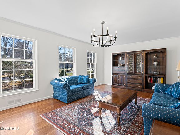 Come see this classic Colts Neck colonial. Set in the the sought after reservoir section of town, close to Lincroft and the Parkway. This center hall colonial features a large formal living room, formal dining room, eat in kitchen, and an expanded family room with fireplace. All rooms have oversized windows drenching the home with light. A fifth bedroom rounds out the first floor. The second floor has a large primary bedroom with full bath and walk in closet, 3 other nice sized bedrooms and an additional bath. There is a full basement that is ready to be finished. If you step out of the sliders in the kitchen or family room you will be on the large trex deck for entertaining or relaxing. There is an in -ground pool in the private yard that backs to greenway. There are 2 brand new furnaces. House is ready to move in!