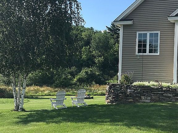 1,800 sq. ft., single level, 2 Bedroom, Carriage House with full 1,800 Sq. ft. walkout basement; 9’ ceilings main level & basement; roughed bath ready to finish; 6 additional windows, sliding door walking out to beautiful blue stone patio. Charming country setting; Single Family Chime located on 4+ acres with stream and 67 acres of common land. Perfect for hiking, snowshoeing, cross country skiing and mountain biking. Beautiful grounds with perennials, raised vegetable garden beds, blueberry bushes, asparagus and beautifully kept fenced in yard. 24’ X 24’ two bay garage with loft/overhead storage. Open floor plan with spacious main living area; Great Room with wood burning fireplace, formal dining area, eat-in kitchen; all hardwood (Red Birch); Granite countertops and stainless appliances; Main level laundry; Hot air furnace with central air to keep cool through the Summer months. Walkout basement w/ 9’ ceiling, with six additional windows & slider. Roughed in bathroom with bedroom and living area ready to finish (zoned for 3 bedrooms). Main level Master suite (carpet) with Large bath (tiled), garden tub and walk-in closet. Second bedroom (carpet); full bath 16’ X 14’ back composite deck with beautiful countryside views. Blue stone front walkway and stone wall Partially paved driveway Location: South Milton on the Milton/Colchester border off Farnsworth Rd. Close Proximity to: 15 minutes to Burlington, VT/Lake Champlain 45 minutes to Canadian Border 1.5 hours to Montreal 3.5 hours to Boston Close to Ski Areas: Bolton Valley, Smugglers Notch, Stowe, Jay Peak, Sugarbush