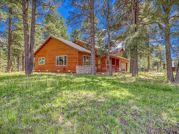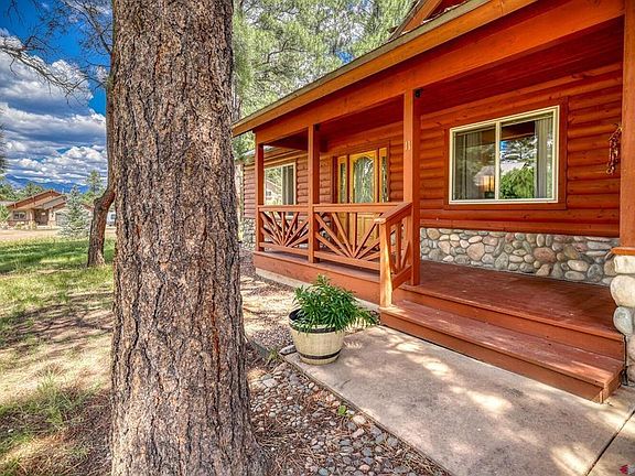 THIS IS THE ONE! There is an amazing view of Pagosa Peak from the living room of this beautiful single level log sided home, with an open floor plan. Located on a quiet cul de sac w/views of Pagosa Peak. Landscaped w/rain bird sprinkler system, with close to 3/4 of an acre of wooded property. One level, vaulted ceiling, large living room, dining and kitchen area. Air-conditioning, humidifier, Kohler fixtures and sinks, lg. pantry, kitchen island, breakfast bar, double oven w/ blt.in micro. as well as this is a Convection Oven. Rock wood burning fireplace w/gas starter and split log mantle. Three bedrooms, two full bathrooms (master bath has a jetted tub). The laundry room has it's own entry to the back patio. Two car garage. Lovely back patio to relax after a day of hiking with a view of the ponderosa pines!