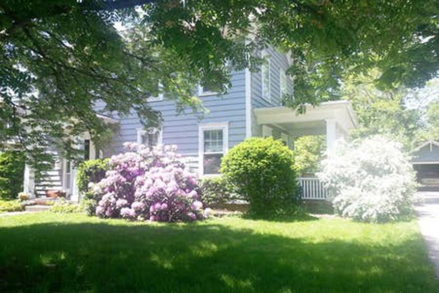 Affordable & Charming, colonial style, 3 bedroom/2 bath home with lovely hardwood floors! Beautiful entrance foyer with French door, living room w hardwood floors has fireplace with gas insert, built-in shelves and doors to inviting side porch. First floor laundry, eat-in kitchen, three bedrooms upstairs with plenty of outstanding closet space, plus a sitting are off the top of the stairs. Lovely back yard with detached garage. High efficiency furnace '04, central A/C '06. Close proximity to SUNY FREDONIA!!