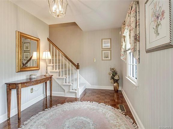 *** PRICE REDUCTION!!!*** Beautiful 2800+ sq. ft. Daniels Farm Colonial in convenient location on desirable cul-de-sac! From the moment you enter the front door, attention to detail and care for this home is evident. The large Foyer welcomes you with parquet floors & French doors that lead you into the spacious Living/Dining Room. H/W floors and french sliders out to large backyard deck that overlooks a serene (man-made) waterfall and rock garden. The newer remodeled Kitchen offers cream custom cabinetry, white tile back splash, s/s applcs., sub zero refrigerator and granite counter tops. There is also a custom built in server w/ lighted wine rack, a 2-way fireplace, & sliders to outside deck. The over sized Family Room boasts a cathedral ceiling w/ exposed beams, a ceiling fan & grand Fireplace. There is also a a wet bar complete with sink and cabinets for your entertaining convenience! Upstairs the master Bedroom includes 2 spacious closets & a newer full BTH w/ tiled shower. 3 additional Bedrooms plus an Office w/ access to the walk-up attic, completes the second story. Brand new carpet in upstairs hall and BR. (h/w floors under all carpeting). Outside, you will find an expanded deck that houses a 4 season bonus room. Complete w/ Sliders, hardwood floors & exposed beams, makes for the perfect office, game room or entertainment space! Professionally landscaped, w/ outdoor lighting, blue stone walkways & irrigation system. (agent owner related)