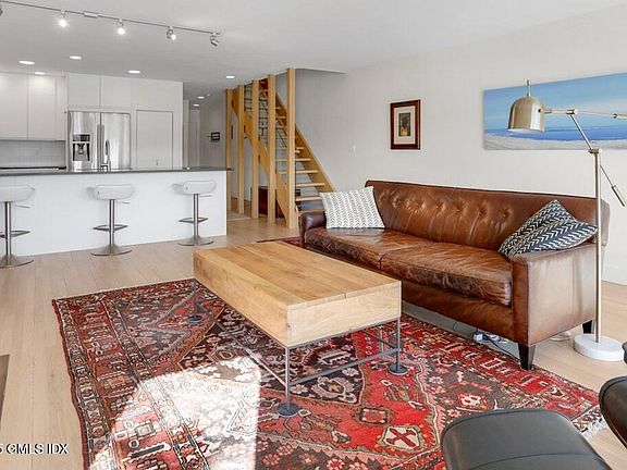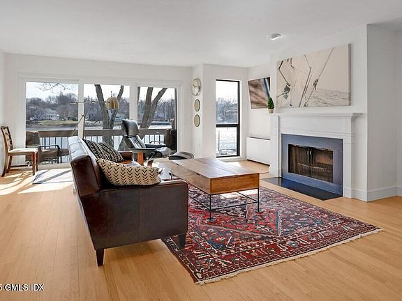 First floor waterfront living with views of the harbor and beyond. Open floor plan with hardwood floors. Quartz kitchen counters and newer appliances. Washer/Dryer in unit. Can be leased furnished or unfurnished. Assigned gated garage space with additional outdoor visitor parking. Close to all Cos Cob has to offer
