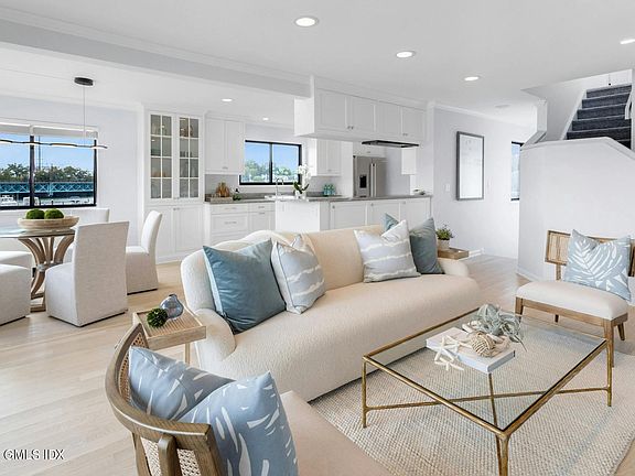 Experience luxury living in this sophisticated waterfront condo, a rarely offered end unit with breathtaking 270° Cos Cob harbor views & abundant sunlight throughout. The expansive custom kitchen is a chef's dream, featuring custom cabinetry, high-end stainless-steel appliances, granite countertops and open plan living area with fireplace. This stunning residence has 2 spacious bedrooms, a primary suite boasting an updated en-suite bath, large walk-in closets, cathedral ceilings, & sliders to a private balcony with serene unobstructed water views. The guest bdrm with bonus 230+ sq ft loft, is an ideal rec room, gym/office with huge walk-in closet & large updated hall bath. Enjoy the perfect blend of relaxation and style in this exquisite water retreat, minutes to the train park & downtown