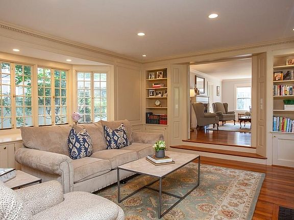 Classically appointed and beautifully updated Colonial with generously sized rooms, natural flow & functionality throughout! The first floor boasts a spectacular, expansive family room w. custom millwork, built-ins, fireplace & french door access to a charming bricked screen porch overlooking the professionally landscaped and fenced yard; a gracious dining room w. wainscoting & beautiful built-in china cabinet; a fireplaced living room with adjoining, bright office; updated and expanded kitchen w. eat-in nook. The second floor offers a generous master bedroom, two additional generously sized bedrooms & a beautifully updated full bath. Abundant attic & basement space offers expansion potential and ample storage. Ideally located in a wonderful neighborhood with city-like/short walk conveniences to parks, shops & restaurants of Lower Falls and a commuter's dream just steps from the Wellesley Farms Commuter Rail & major commuting routes! New HVAC, roof 2005 - see List Agents for full list.