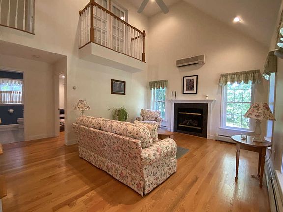 Charming 3 bedroom 2 bath cape is ready for its next owners. In excellent condition, this home offers vaulted ceilings in the living room with a gas fireplace. Large farmers porch, hardwood floors on first floor, and Corian countertops in kitchen and bathrooms. The unfinished basement offers space for storage or a home gym. Spacious bedrooms upstairs with another living room area upstairs as well. Home comes with A/C mini split, whole house standby generator, and security system. Enjoy the common area that is maintained by the association to walk the trails down to the river.