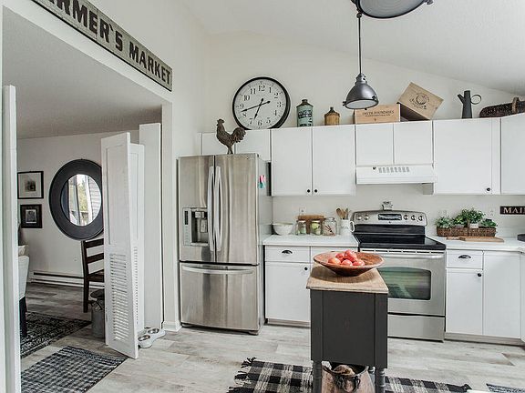 Light and airy open concept 2 BD/1.5BA condo in serene North Berwick setting. This pleasantly updated end unit condo surprises at every turn and features a bright and cheery kitchen with views of the rolling hills behind, tons of natural light throughout, chic design details, Master with walk-in closet plus large shared bath, and cathedral ceiling living room that opens up to a semi-private deck. Updated light fixtures, stainless steel fridge & stove, new coastal vibe flooring all add to the easy breezy feel of this home. Back entrance opens up to sunny, grassy common area and views of woodlands. Basement laundry with storage and room for 1 car in garage. Walk out your front door to neighborhood accessed riverwalks along Great Works and nearby Negutaquet Conservation Trails. Life is easy with low condo fees that cover water, sewer, and plowing. Minutes to grocery stores and town center plus easy commute to Dover/Berwicks/Seacoast. Why rent when you can own this inviting home!