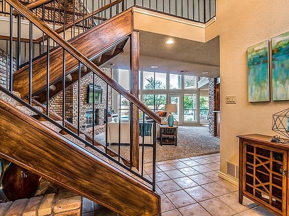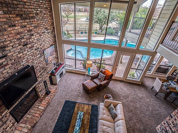 Completely AMAZING contemporary golf course home with POOL & SPA! The WOW starts with the minute you walk through the door with dramatic vaulted ceilings, loads of windows, exposed brick walls, convenient wet bar, open staircase, sky lights, and ALL UPDATED. Master plus a secondary bedroom are located downstairs. Master features sitting area with fireplace and door to back yard. Extensive outdoor living, covered and uncovered. Island kitchen with granite, stainless and incredible views. Upstairs are two more bedrooms, large second living with half bath and a special balcony. This home has it all -- REMARKABLE storage, oversized garage, cul de sac street, three recent HVAC units, and a 50 year metal roof.