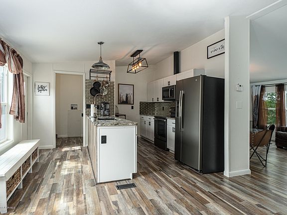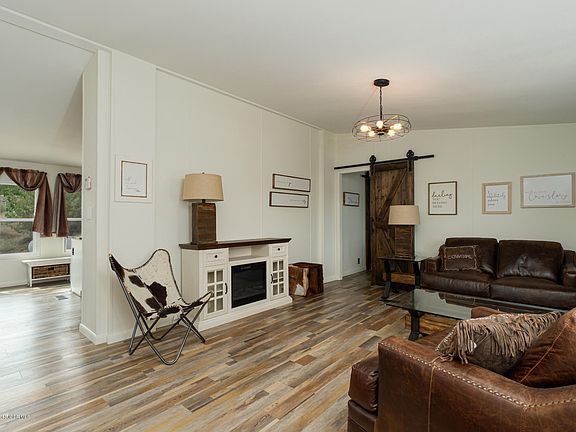 This beautiful split floor plan home, in pristine condition, has never been lived in since being fully remodeled. Custom, from the cabinets to the beautiful barn doors throughout, instant hot water in the kitchen, to the flooring. No detail has been over looked in remodeling this lovely country chic home. Completely turn key, the furniture can be negotiated as well. All of the furnishing are brand new with receipts. There is a pipe directly under floor under stove that has been cut and capped so it can be converted to propane if desired. Dryer can be propane or electric. The freezer in the carport is included in the sale.