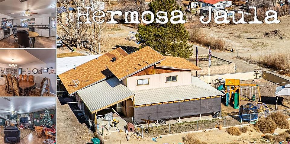 ''Hermosa Jaula'' This inviting two-story home offers flexible living space with 4-5 bedrooms and 2 bathrooms. The fifth bedroom is a non-conforming room featuring laminate flooring, making it ideal for a home office, game room, or bonus space, while the remaining four bedrooms are comfortably carpeted. Three bedrooms and a full bathroom are conveniently located on the main level, with two additional bedrooms and a bathroom upstairs, perfect for added privacy or guest accommodations. The home features a designated laundry room and a warm, functional layout throughout. The spacious kitchen provides a refrigerator and an electric stove. The dining room showcases a beautiful built-in hutch, perfect for displaying fine china or cherished décor. The living room provides extra comfort with a built in wall evaporative unit. Outside you will enjoy the covered patio that wraps around three sides of the home, complete with durable metal roofing, an excellent space for relaxing or entertaining in any season. Additional highlights include a natural gas furnace and an additional evaporative cooler for year-round comfort. This home blends character, functionality, and versatility, making it a wonderful place to call home and less than one hour from Durango, CO.