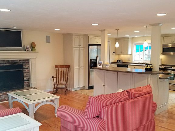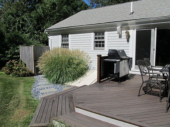 This beautiful home sits on a wooded half-acre with mature trees draping the front yard. The home was totally renovated in 2006 with new kitchen, baths, recessed lighting, built-in speakers, Marvin windows, Anderson doors, central A/C, cedar-shingles, granite steps, and home security system. A spacious mahogany deck (2010) overlooks large flat lawn (perfect for play) and an in-ground fire pit. A stone walkway leads to an outdoor shower enclosure with changing area/bench. The 2006 renovation also prepared the property for expansion - adding a new septic system rated for a four-bedroom home, and 200 AMP electric service sufficient for a much larger home. Move in and enjoy a modern 2 BR cottage right now. But the property is prepared for expansion if and when you want more space.
