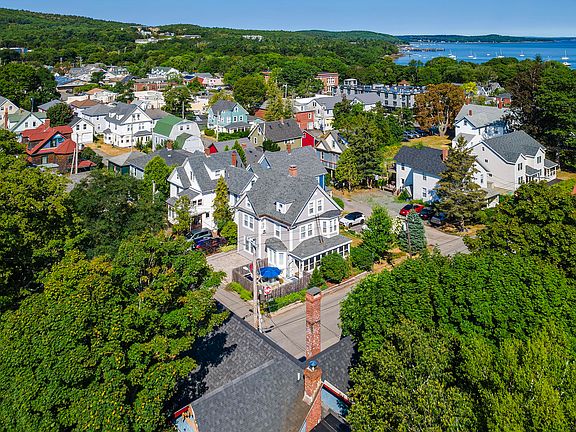 Located in the heart of the village, this stately 5-bedroom, 2.5-bath home blends the timeless character of its early 1900s origins with thoughtful modern updates for comfort and efficiency. Inside, you'll find gorgeous wood floors, a wood-burning fireplace, and refined woodwork, all enhanced by coffered ceilings and fresh paint. The inviting enclosed front porch is the perfect spot to relax after a day exploring Acadia. The second floor offers three bedrooms and a beautifully renovated full bath and laundry room, while the third floor provides two spacious bedrooms and another updated full bath—plenty of room for family and guests. The enclosed back patio creates a private outdoor retreat, ideal for gathering with friends. Recent improvements include a new roof, updated bathrooms, plaster replacement, plantation shutters throughout, outdoor landscaping hardscaping and more, making this home truly turnkey. Offering two parking spaces.
