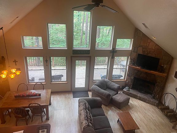 **Nature’s Paradise at Mountain Harbor at Lake Ouachita** Discover your dream cabin retreat, nestled near the serene Lake Ouachita. This charming log cabin, with its tin roof, boasts unobstructed views of the Ouachita National Forest from expansive windows and a wrap-around deck. Inside, enjoy an open-concept living area perfect for family gatherings, featuring a floor-to-ceiling Oklahoma stone fireplace. With three cozy bedrooms and two full bathrooms, this peaceful haven offers comfortable living quarters. All furniture can be included! Outside, create lasting memories around the fire pit, roasting marshmallows and sharing stories. Experience the tranquility and beauty of Arkansas in this idyllic cabin, perfect for a weekend getaway or a permanent retreat. Don’t miss out on owning a piece of nature’s paradise. Schedule your showing today!