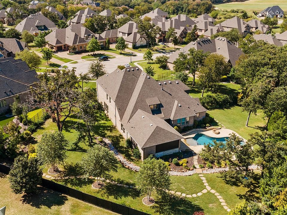 MULTIPLE OFFERS RECEIVED. FINAL AND BEST DUE BY 10:00 AM TUESDAY, OCT 10TH. Welcome to a stunning residence in the prestigious Trophy Club neighborhood of Hogans Glen! This luxurious haven is nestled in a guard-gated community, offering not only security but also an exclusive ambiance that exudes sophistication. Situated on a large, pie-shaped lot at the end of a quiet cul-de-sac, this captivating property provides space that is rare to find. The interior boasts gorgeous hardwood floors & updates galore. The heart of this home is the remodeled kitchen featuring top-of-the-line appliances, quartz countertops, & custom cabinetry. The allure continues outdoors where a park-like backyard awaits. A private gate leads to a playground and amenities behind the home. This Claffey pool invites you to cool off on hot Texas days while a covered patio with electric screens offers the perfect spot for al fresco dining. Check out the pool bath!