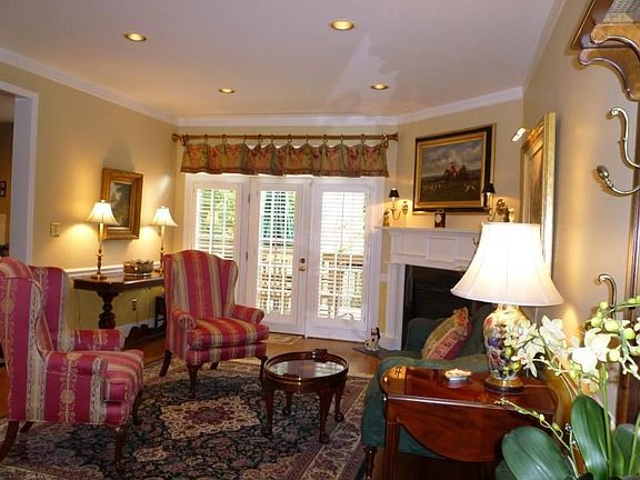 You Will Love this Luxury Townhome,Totally Updated,Shows Like a Model,Small Quiet Dev.Desirable Location,Walk to Downtown,Peaceful Private Rear Deck Covered Patio Backs to a Relaxing Babbling Brook. This Home Has it All,Great Open Flr-Plan,2-Car Att-Garage,3 BR's,2.5 Baths,2 Fireplaces, Gorgeous Granite Kit w/Upgraded Cherry Cabinets,Upgraded Tile Backsplash & Floors, Bay Window w/Attractive Plantation Shutters,Formal DR w/Classy Upgraded Wide Trim/Molding Pkg Thru-Out, Spacious LR w/Warm Gas FP & Decorative Painted Mantle w/Fluted Columns, Triple French Doors w/Plantation Shutters Leading to Rear Deck Desirable Oak Flrs Thru-Out 1st Level Leading to Upper Hall w/Elegant Open Curved Staircase, Lrg MBR Suite w/High Volume Ceilings,Luxurious MBath Stunning Fini W/O Bsmt,Lrg RecRm w/Gas FP,Pvt Den & French-Doors to Pvt Covered Patio.