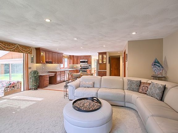 This custom built Contemporary home has been meticulously maintained by the original owners with approximately $60,000 of improvements over the past several years. Most recently, a freshly painted interior and exterior, new kitchen, roof and driveway. The custom kitchen has a solid cherry cabinets with soft close drawers & doors along with under-cabinet lighting, granite counters, tiled floors and new appliances including double oven, stove, dishwasher and microwave. The 10 rooms include a fireplaced living room, dining room, 4 bedrooms all with ceiling lights, an office, family room, game room with wet bar. The most used is a 12x16 3 season room that is enjoyed year round and overlooks 1.7 acres of beautifully landscaped grounds. Enjoy the open floor plan and natural lighting thru the large windows and sky lights,The 3-1/2 baths have granite counters and tiled floors. The home is in one of Atkinsonâs most sought after neighborhoods, and is convenient to the highways.