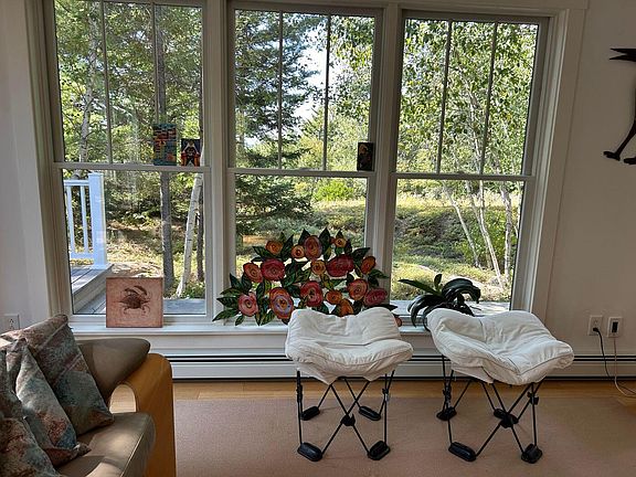 Conveniently located on a quiet, private lane outside of Bar Harbor, Blueberry Summit offers an efficient, year-round residence in a pleasant setting. Blueberry Summit is part of the Stone Haven subdivision and resides on a private half-acre lot with use of the association's 22-acre parcel, with distant views of Blue Hill. The attractive residence offers three bedrooms, one of which is large and bright with a vaulted ceiling; there are two full baths, several 'extra' rooms for a sitting area or den, as well as a large, finished daylight walk-out lower level as office space, exercise area or studio, and an attached one car garage. The pleasing forested setting has granite ledges, a woodland mix of conifers and birches, with areas of blueberry bushes.