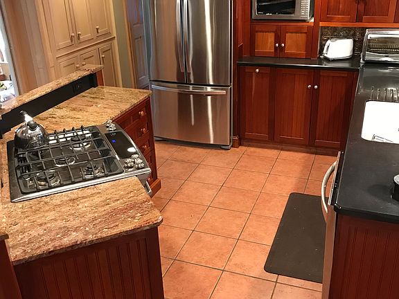 Truly turnkey 9 Rm Cape nestled near the center of town. Kitchen boasts granite and soapstone countertops, maple cupboards and mahogany cabinets, recessed LED lighting, breakfast bar and cook's island, along with pocket doors leading to the LR. First floor Master Bedroom has 2 walk-in closets and separate office or nursery. Family room leading from 2nd stairway has balcony, 2 walk-in closets, seating area and a full bath nearby- could easily be a MBR! Oversized 2 car garage with fenced in backyard. Only 7 minutes to 91. Walking distance to the bike trail.