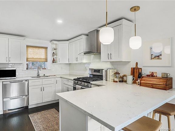 Completely remodeled in 2017, 11 Rome Street will have you falling in love inside & out! Roof, siding, HVAC, electric, & tankless hot water heater are all ONLY FOUR YEARS OLD! Before even stepping foot inside, it's easy to notice the charm of this adorable Cape, and the upgrades and modern amenities within do not detract from the undeniable character of the home. The downstairs features a spacious kitchen with gas range, quartz countertops and breakfast bar; an open-concept dining and living room with wood-burning fireplace and half-bath; and a sunken family room/bedroom suite with full bathroom. Upstairs, you'll find two bright, spacious bedrooms and a large full bathroom with tub. The backyard is mostly fenced-in and features a patio with plenty of room for furniture for enjoying time outside year-round! Located on a quiet street in East Norwalk, just minutes from beloved grocery store, Stew Leonards, and other shopping, 11 Rome Street really is the perfect Connecticut Cape!