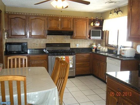 This ranch is in move in condition. It offers a rocking chair front porch, living room with gorgeous HW floors, updated eat-in kitchen with wood cabinetry, granite counters, tile floor, 5 burner SS stove and door opening to rear deck. The main bedroom is huge and has sliders onto the deck. The other bedrooms offer HW flooring. The basement is finished and has a family room, laundry/utility room and another room with closets and shelving galore. There is also a convenient half bath on the lower level. The yard is completely fenced and there is a 2 car deep garage and concrete driveway. Located only minutes to major roads and the Hamilton Twp train or Riverline Lite Rail in Bordentown City this is a commuters delight. Ideally located on a quiet dead end street with no through traffic, plenty of shopping and local parks all within minutes of your front door.