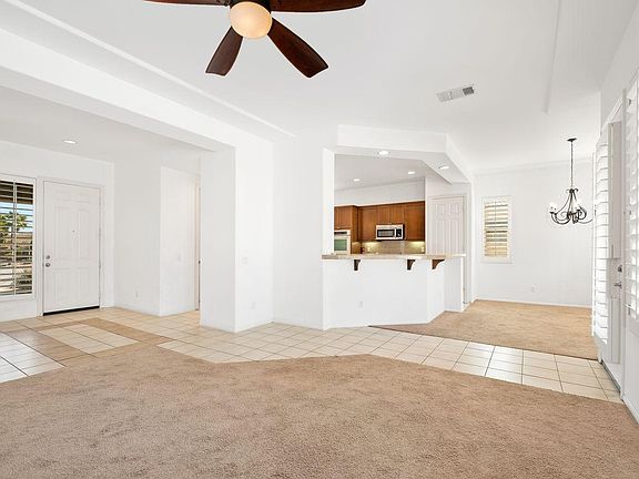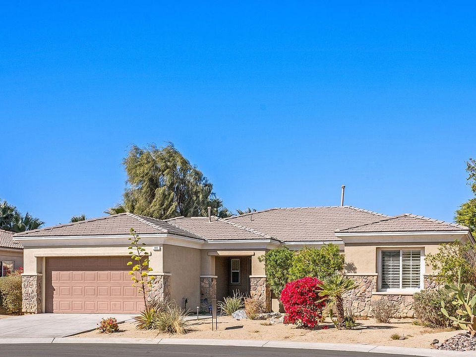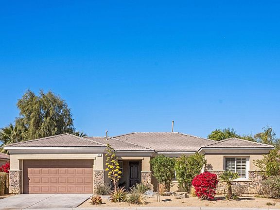 Welcome Home! A spacious 3 bedroom, 2.5 bathroom, oversized, finished 2 car garage, family home is in the prestigious gated community of Amatista at Capri in the sunshine city of Palm Desert! Situated in a quiet Cul-de-sac, set back on over a 10,000+ oversized lot. Traditional in design, with sought out open floor plan, 10 foot ceilings, 8 foot doors throughout, large kitchen with an island, pantry, double ovens, a plethora of cabinets! Plus there is eating area in the kitchen and breakfast bar which is open to the dining room, granite counters, oak cabinetry, stainless steel appliances, built in microwave and recessed lighting. Bedrooms are all generous in size, with large closets, the master en suite features a garden tub & separate shower, dual sinks, his and hers dressing area and private access to the backyard. Indoor laundry with sink & plenty of built in cabinet/storage space. Interior has a fresh clean coat of paint, now a flat white canvas for your personal tastes. Ideally located, freeway close, Casinos, concert venues, Restaurants, McCallum Theater, El Paseo shopping, gallery's and multiple restaurants are just a short fun drive! So many activities in the area, hiking, biking, horseback riding, cycling, pickle ball etc! Walking distance to Freedom Park, dog parks, sought after Ronald Reagan Elementary and so much more! A lovely Must See Home/Vacation Home! READY TO MOVE IN!! Pets subject to approval, Landlord pays for HOA and gardener