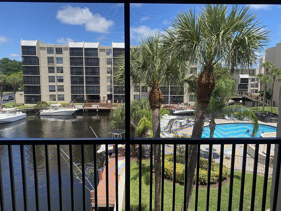 Beautiful pool & lagoon water views! Move in ready. Completed updated. Resort Style Living in this gated waterfront boating community. Spacious floor plan with UPDATED kitchen open to dining and living room. Complete with impact windows and sliding glass door. New A/C. Wood floors. Fabulous opportunity to own this newly renovated condo with beautiful pool, canal and lagoon views. New kitchen features granite counters and SS appliances. Updated bath w/ new floors and vanity. This one won't last. Perfect location in SE Boca close to everything. Community offers 5 heated swimming pools, 2 lighted tennis courts, bocce ball, and so much more. Maintenance fee includes, water/sewer, cable w/HBOs, Hot water, building insurance, lawn/shrub care and FULL Reserves.