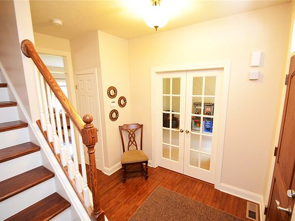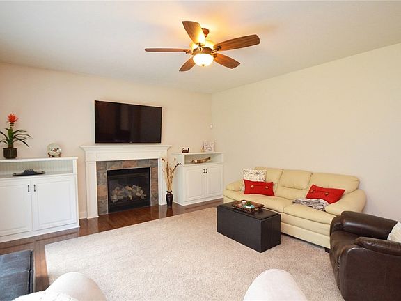 Three years new 2 story! Open lay out with Great room has hardwood floors, a gas fireplace with built-in shelves and is open to Kitchen. Spacious eat-in kitchen features island with breakfast bar, solid surface counters, wood floors and pendant lights. Eating area has many windows for natural light and sliding door to rear stamped concrete patio. Oak stairs lead up to 4 bedrooms. A luxurious master suite with tray ceiling, walk-in closet and dressing area. The large master bath has 2 sinks, a whirlpool tub and shower with frame-less glass doors. Laundry room on second floor for convenience. Basement with egress window to daylight, tank less hot water, future bath plumbing and 9' superior walls ready for finishing. Stamped concrete porch and front walk. This is gem!