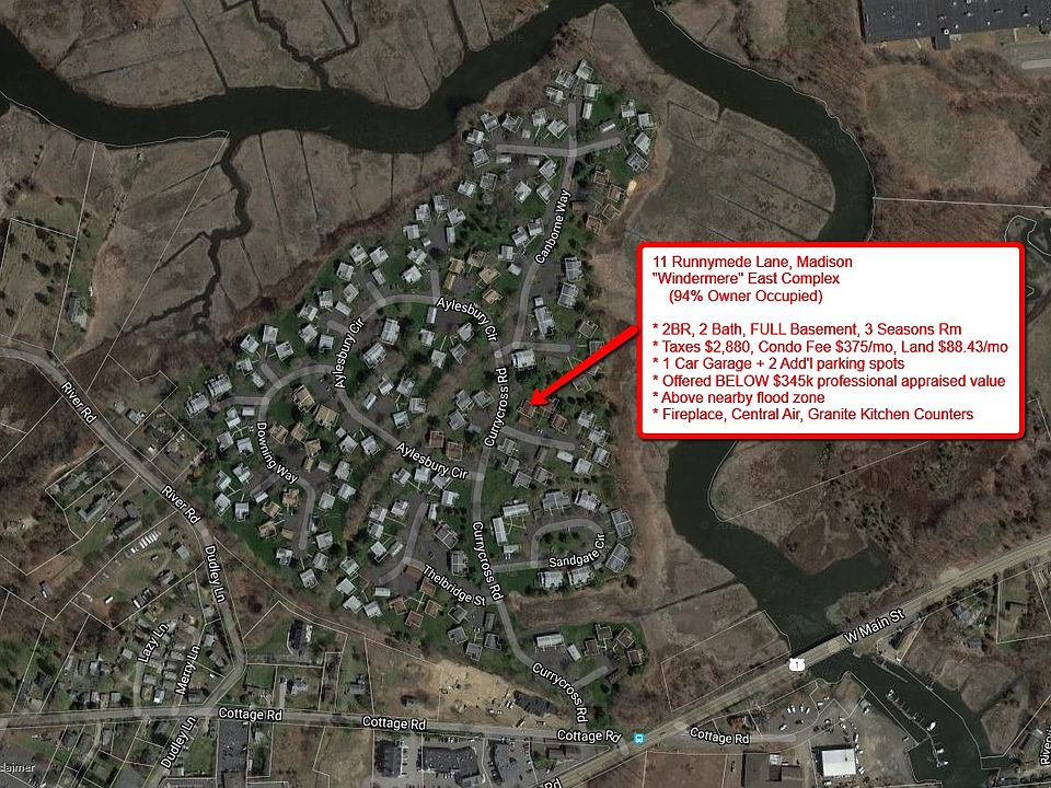 Great 2 BR ranch style condo in Windermere condo complex which has 94% Owner Occupied rate! It's a fully detached unit so there's no noise transmission through walls or floors above. This unit has full basement which measures 38'-4" x 30'-3", 1 Car Garage has interior dimensions of 11'-6" x 23'-5" + 2 add'l parking spots (one in front of garage/1st spot past garages). This unit is priced right and being offered BELOW $345,000 professional appraised value (appraisal available upon request). The unit is located above the nearby flood zone so no flood insurance is required. Location is close to everything. 3 Seasons room and fenced in patio area gives this unit a single family feel. Unfinished basement area and pull down stairs to attic provide plenty of storage. High Efficiency Gas fired HVAC system upgrade is now available with Gas being installed in neighborhood.