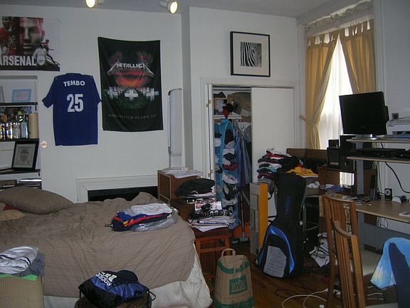 Studio with hardwood floors high ceilings, decorative fireplace, large windows and heat and hot water included. Landlord requires the first and last month's rent. The broker fee is one month's rent
