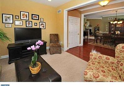 Fantastic end-unit townhome located on desirable cul-de-sac street in the sought after community of Ryan Court. As soon as you enter the front door, you'll find gorgeous paint colors and upgraded lighting fixtures throughout. The entry foyer with hardwood floors leads to the tranquil Living Room on one side, and the formal Dining Room with bay window and beautiful wood trim on the other. The two story Family Room boasts a coffered ceiling, gas fireplace, and is wired for cable (behind large mirror). The open Kitchen has breakfast bar, tile backsplash, and reverse osmosis water purification system while the Breakfast area includes pantry and access to the expanded deck through sliding doors. Outside, enjoy the warm weather on the custom bench, surrounded by arbor vitae for privacy. Upstairs you'll find 3 bedrooms, all with crown molding and ceiling fans. The spacious Master Suite has plenty of closets, including a walk-in, and a beautiful attached Bath with double shower and corian double vanity. Hall Bath and Laundry Closet round out the 2nd floor. Basement is semi-finished and includes storage and outside access. 1-car attached Garage has remote opener and utility sink. Homeowners Association handles common area maintenance and keeps the neighborhood in pristine condition. Close to Route 309, easy access to Merck. Don't pass up the opportunity to move right in to a showcase of a home! Please contact agent for explanation of real estate tax amount.