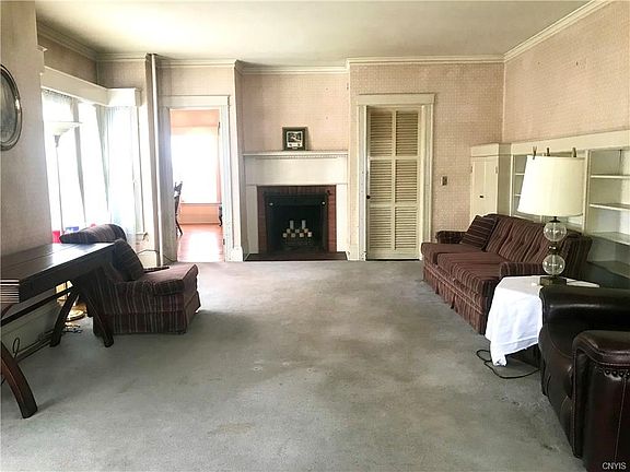 You must see INSIDE this Spacious, Historical Home! It has all the character and charm of yester-year, yet important updates already done for you. It was once an affluent Dr.'s Home - & all the extra details show it! Gorgeous Hardwood floors up & down, Winding wood staircase in the center hall, 2 fireplaces, french doors, original over sized natural wood moldings, built in cabinets & bookshelves galore! 6 bedrooms, 2.5 baths, & walk up attic! Bright, large windows throughout - (most have been replaced). Newer Boiler too! Patio & fenced backyard. Huge walk in Pantry has an antique Medicine shelving. This home would make a wonderful bed & Breakfast, or Home Business location as there is a separate entrance for what used to be the waiting rm & Dr.'s off. Bring your ideas -its HUGE
